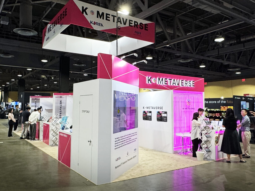 K-MetaverseExhibition Show: AWE USA 2025 Venue: Long Beach Convention Center, Long Beach, CA Date: 6/10 ~ 6/12 Size: 20′ x 40′ Type: Wooden Structure